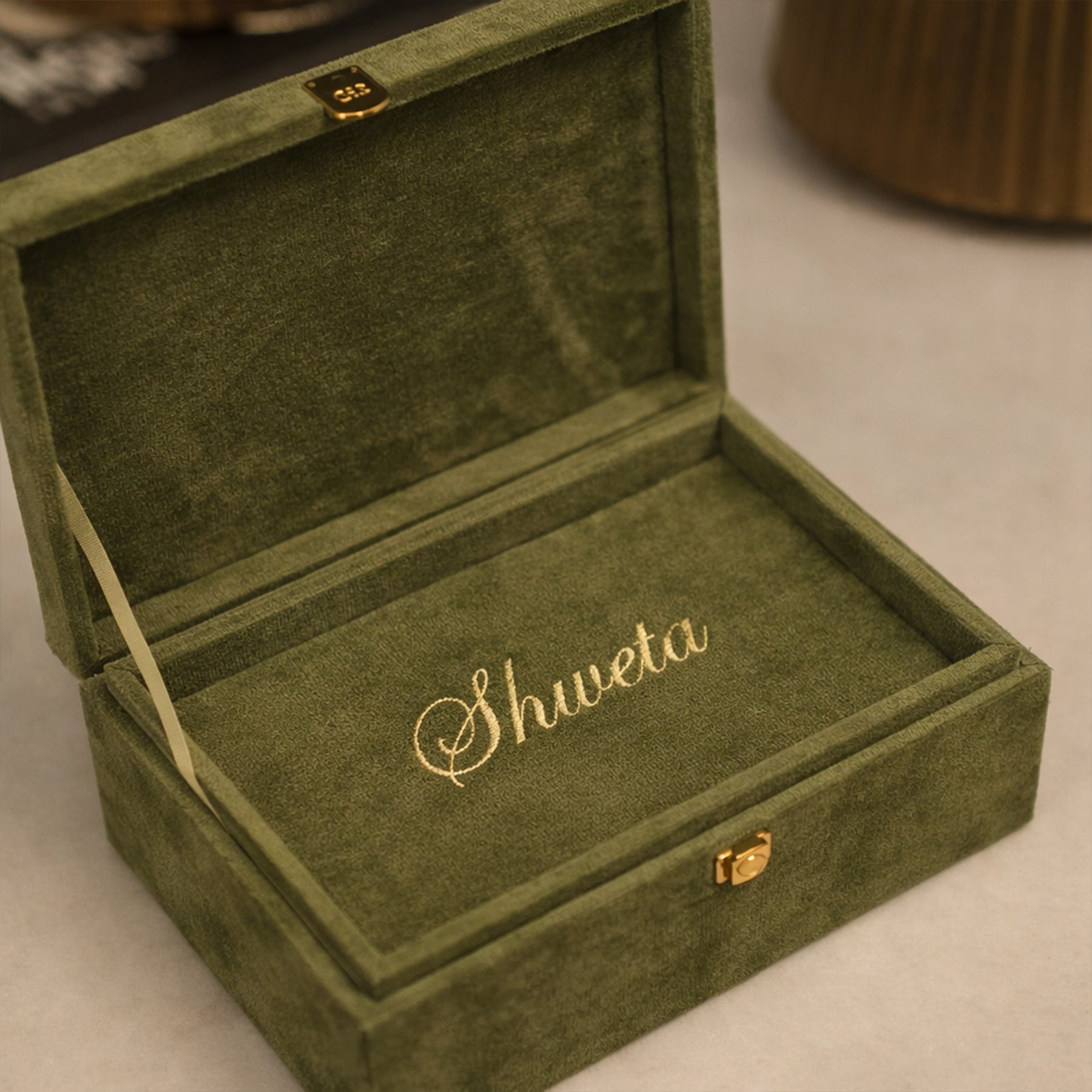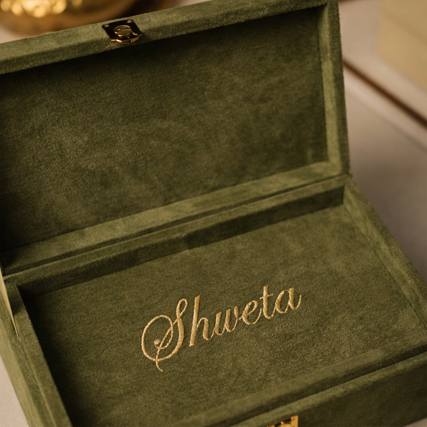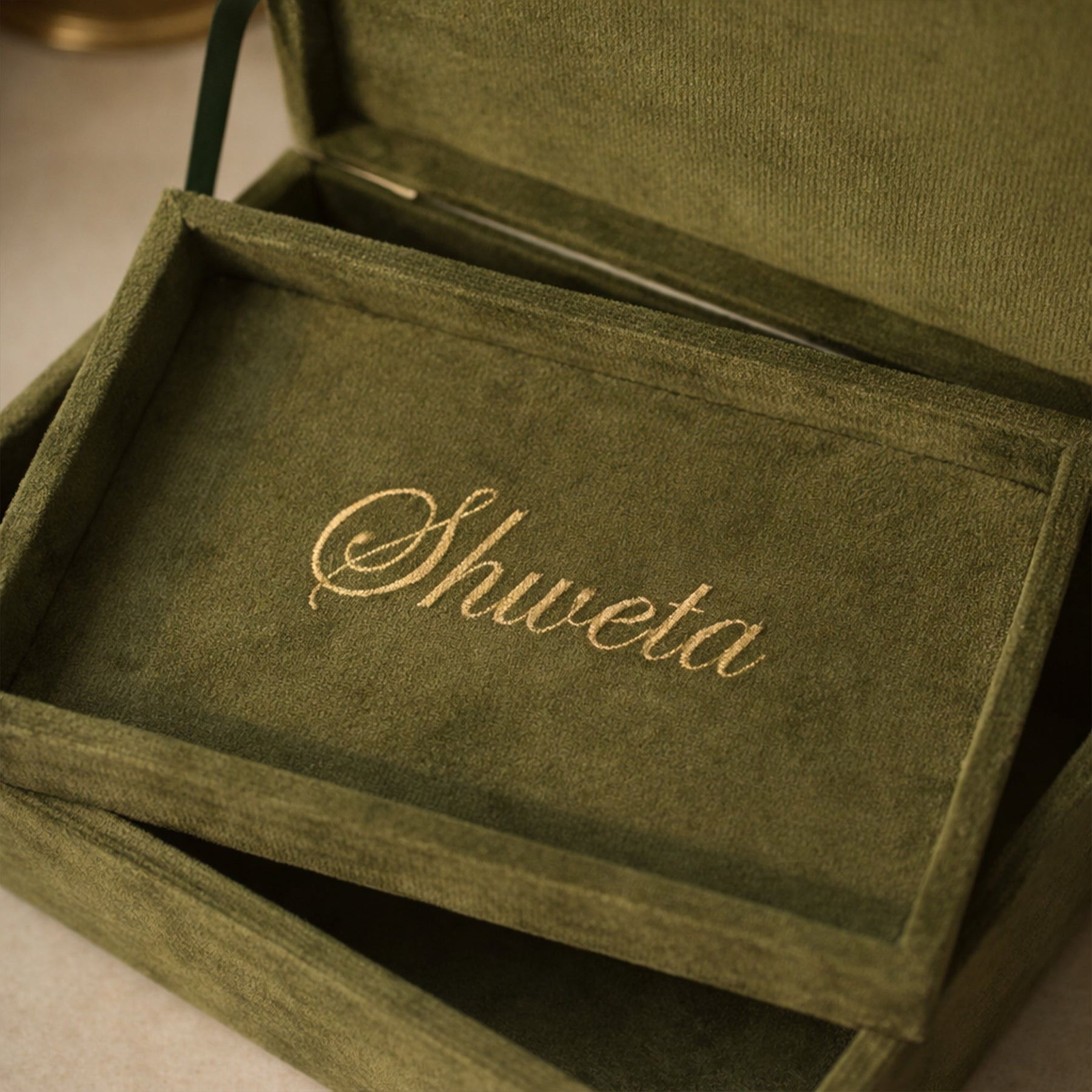 Inspired by the timeless elegance of Jaipur's traditional florals, this hand-embroidered jewelry box is a tribute to India’s rich artistic legacy. Covered in plush suede and adorned with intricate traditional motifs, it opens to reveal a fabric concealed interior with a removable tray and secure locking clasp. A perfect blend of heritage and function — made to hold your most treasured pieces with grace.